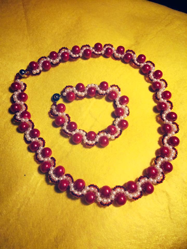 Perle rosii de 6 mm,margelute albe de 4 mmsi margelute rosii de 2 mm.